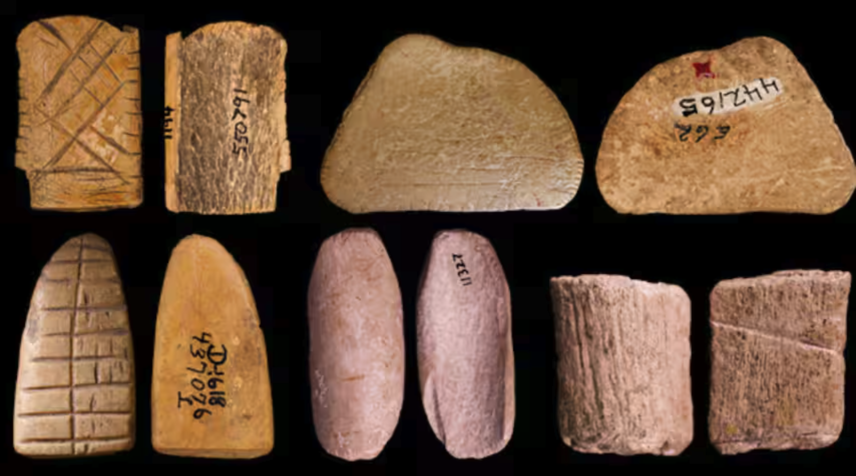 Het zijn geen dobbelstenen zoals wij die kennen. Het zijn stenen en botten met markeringen. Objecten die volgens onderzoekers aan bepaalde criteria voldoen. Handzaam. Gemarkeerd. Geen gat.